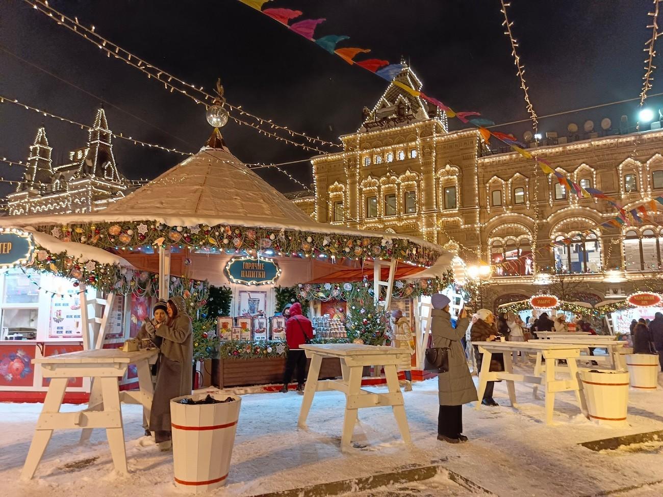 Вы сможете самостоятельно прогуляться по новогодним базарам Красной площади, посетить "ГУМ" и "Детский мир", сфотографироваться на Никольской улице под водопадом гирлянд и многое другое...