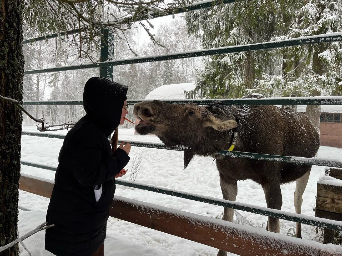Лосиную ферму настоящим лосиным царством. Действительно, всё в селе Сумароково так или иначе завязано на этой тематике. Работают на ферме настоящие энтузиасты, которые очень любят природу и своих подопечных. Они и проведут по хозяйству. Под их чутким руководством экскурсанты могут не только пофотографировать, но и погладить этих величественных обитателей русских лесов.