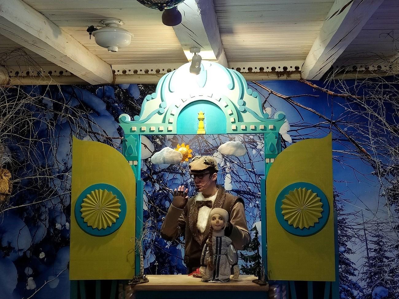Кот Баюн, Домовой и Снегурочка проведут вас по подворью и сказочному Терему, покажут самое интересное и вместе с вами загадают желания. В светлице вас ждёт кукольное представление про снежную красавицу, а в горнице Снегурочка расскажет про свое житьё-бытьё и покажет таинственные волшебные предметы. Вы обязательно побываете в Ледяной Комнате и отведаете морозного коктейля.