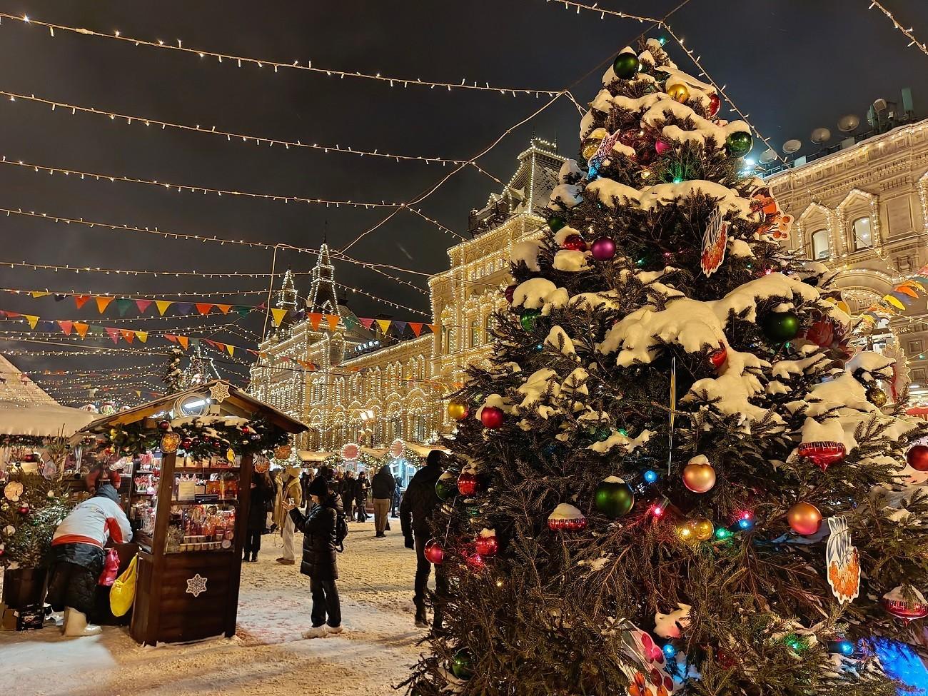 Вы сможете самостоятельно прогуляться по новогодним базарам Красной площади, посетить "ГУМ" и "Детский мир", сфотографироваться на Никольской улице под водопадом гирлянд и многое другое...